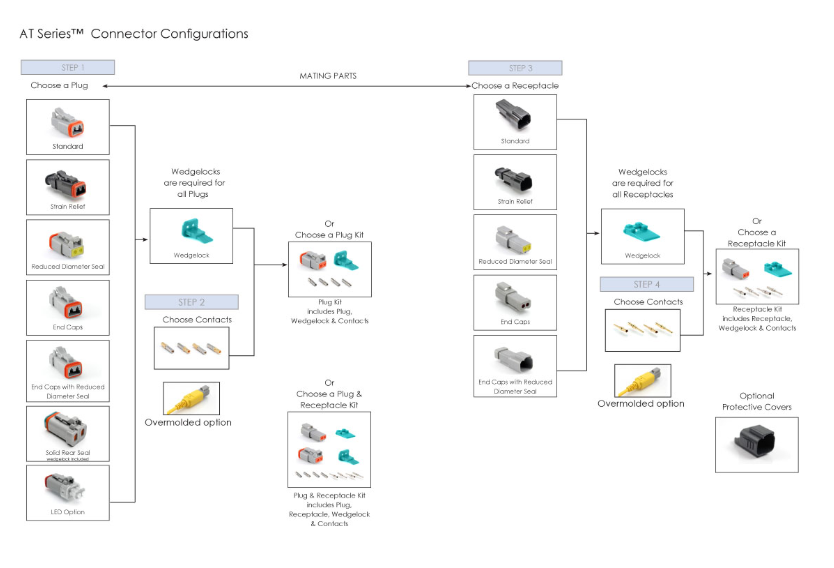 The AT Series is a family of sealed circular connectors developed by Amphenol Sine Systems, widely used as an industrial alternative to DEUTSCH DT connectors.