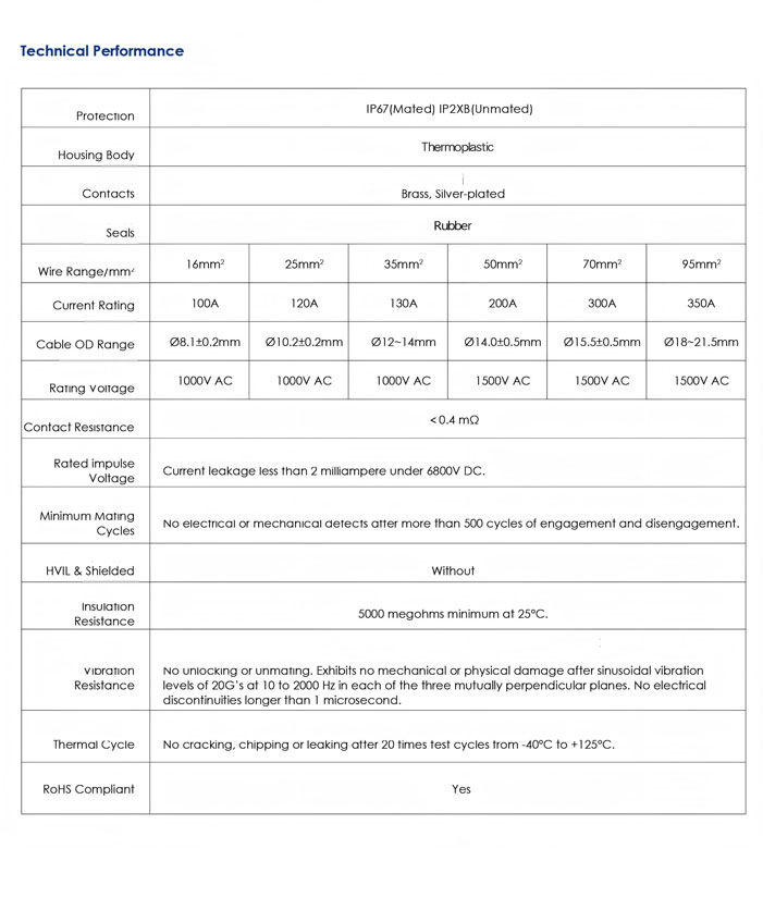 RADSOK® contact technology. The ATHP series is designed for a variety of "xEV" and energy storage applications, IP67, single core or two rated current from 20A to 180A