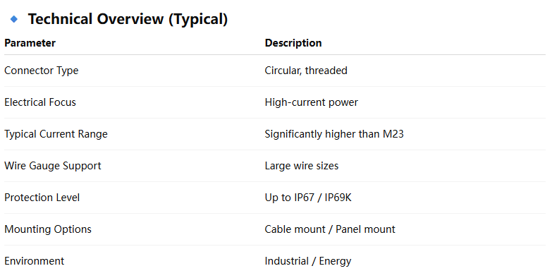 Designed for High-Current Power Transmission in Demanding Industrial Environments RTHP circular connectors are engineered for applications requiring high current capacity, large wire gauges, and reliable power delivery. With a robust circular design and secure locking mechanism, RTHP connectors are ideal for industrial power distribution, energy systems, and heavy-duty equipment. Application