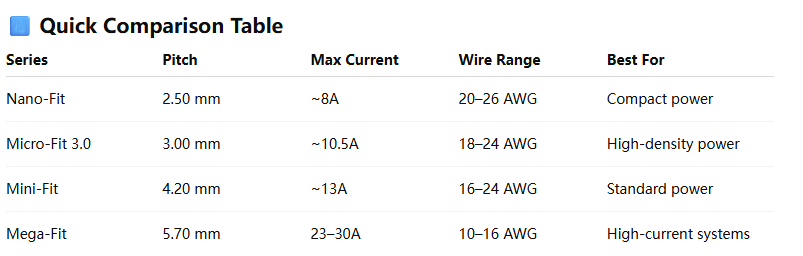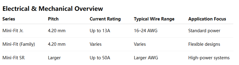 The Mini-Fit Connector Series is one of the most widely used power connector families in the industry, trusted for its reliable performance, flexible configurations, and broad application coverage. The Mini-Fit family includes multiple variants designed to support different current levels, wire sizes, and power requirements, ranging from compact power distribution to high-current industrial app